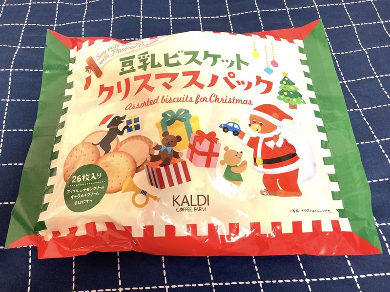いつもの豆乳ビスケットが10枚入りなのに対し、こちらは26枚入りなので、クリスマスパーティにも使えそうな大容量。