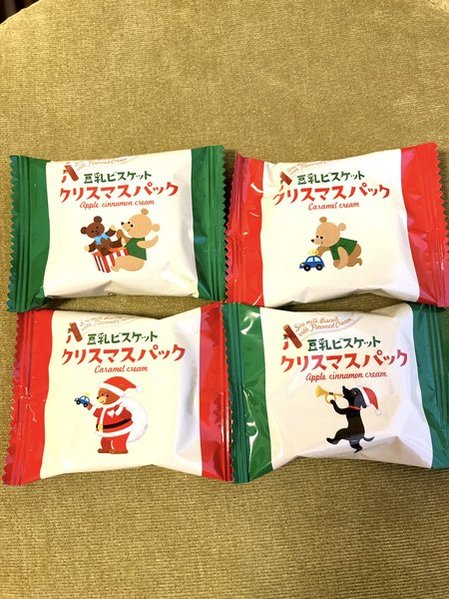 豆乳入りのビスケットでクリームをサンドしたお菓子のクリスマス限定品。